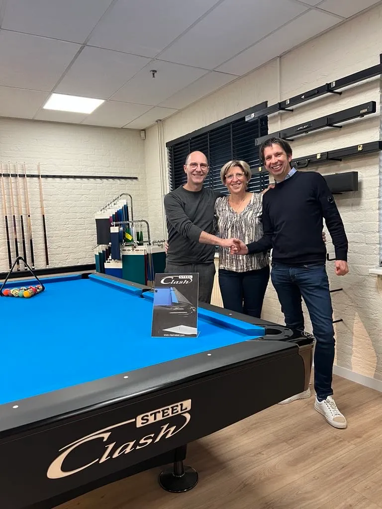 Bal Enzo Wilrijk, owned by Tom and Sabine, is well known in the Belgium pool scene. They are prominent organizers of many professional tournaments and run a special training center, “Start 2 Pool”, dedicated to teaching players of all skill levels and helping them reach the next level. Recently, they decided to upgrade their Clash Steel Pro tables to the latest Alumen model (in total 10 tables) with special pocket sizes. In collaboration with Tom and the Clash team, we make a special order to ensure the tournament specifications are met precisely, avoiding the use of larger shims. Instead, we use 3mm shims and extending the rails for the best playing results, achieving perfection.